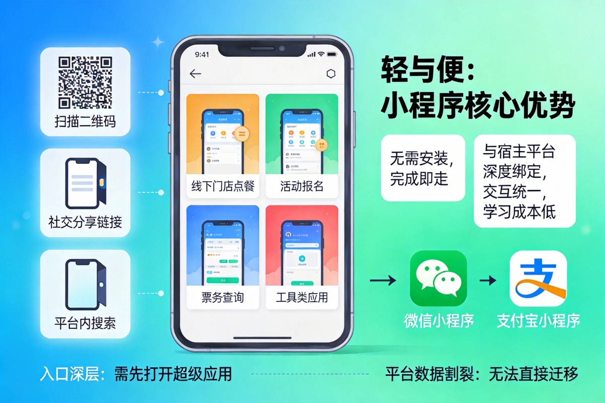 小程序的核心优势在于其“轻”与“便”。用户无需安装,通过扫描二维码、社交分享链接或平台内搜索即可瞬间打开服务,完成即走。这种特性极其适合低频次、场景化、即需即用的服务,如线下门店点餐、活动报名、票务查询、工具类应用等。其用户体验与宿主平台深度绑定,交互范式相对统一,学习成本低。然而,其入口相对深层(需先打开超级应用),且平台间的数据与体验是割裂的(微信小程序的数据无法直接迁移至支付宝小程序)。