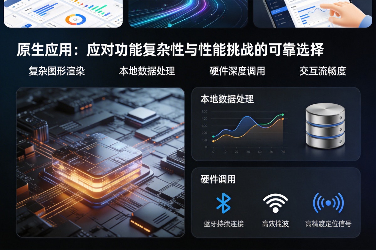 2. 功能复杂性与性能要求:您的产品是否需要复杂的图形渲染、大量本地数据处理、深度硬件调用(如蓝牙持续连接、后台高精度定位)或极致的交互流畅度?若是,原生应用是更可靠的选择。