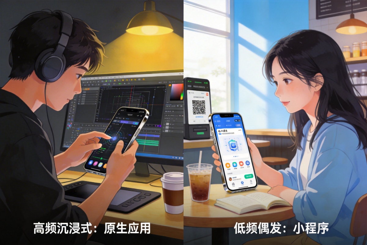 1. 核心用户场景与使用频率:您的服务是用户需要高频次、沉浸式使用的核心工具,还是低频、偶发、基于特定线下或社交场景的轻量级服务?前者倾向原生应用,后者倾向小程序。