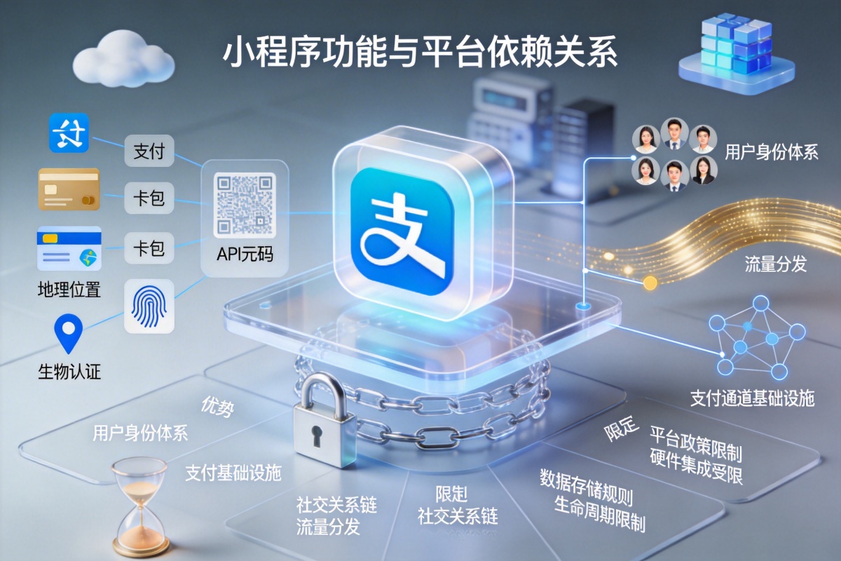 小程序的功能则严格依赖于宿主平台的开放能力。微信、支付宝等平台会基于自身生态策略、安全考虑和商业布局,逐步开放诸如支付、卡包、地理位置、生物认证等API。这意味着一方面,小程序可以无缝利用平台庞大的用户身份体系、支付基础设施、社交关系链和流量分发机制,快速实现业务闭环;另一方面,其功能创新受制于平台政策,对于需要深度集成设备硬件或涉及平台未开放领域的复杂需求,小程序可能无法满足。此外,小程序的数据存储、生命周期也受到平台规则的限制。