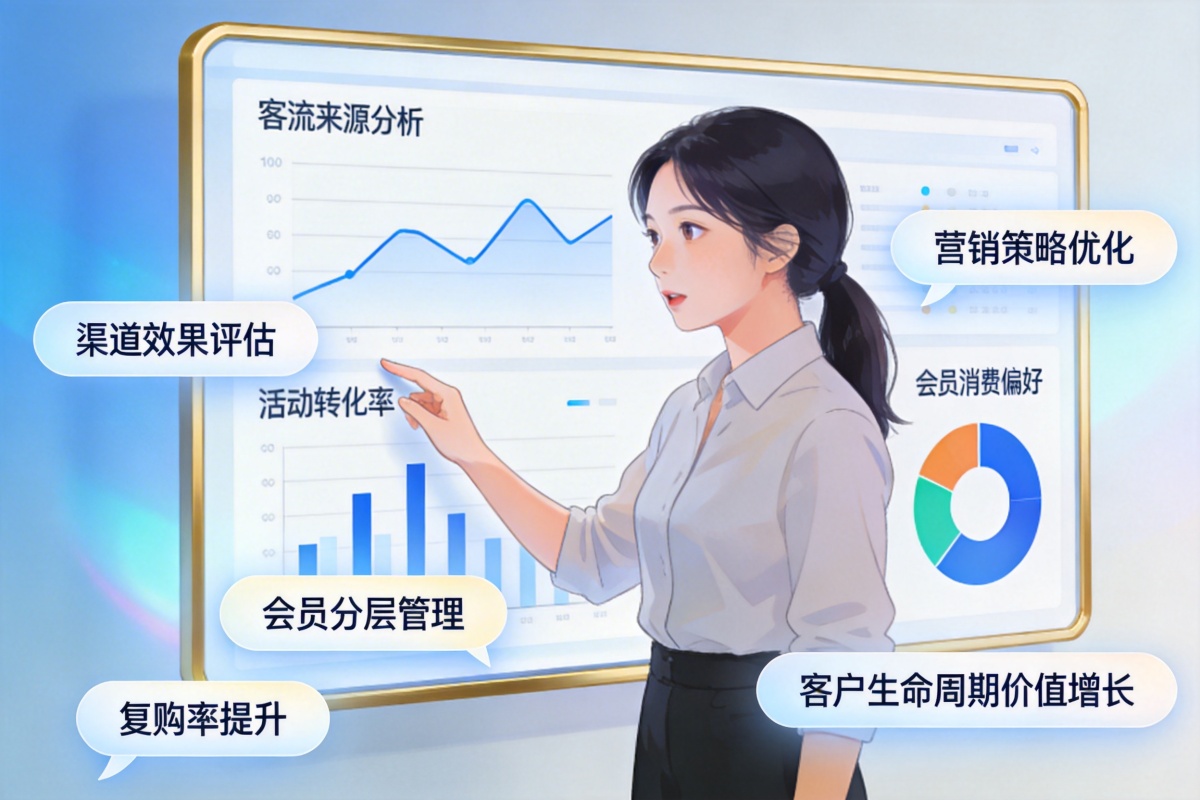 解决方案背后是数据驱动的运营理念。我们为门店管理者提供清晰的后台数据看板,涵盖客流来源分析、活动转化率、会员消费偏好等多维度数据。这些洞察帮助商家评估不同引流渠道的效果,优化营销策略,并实现会员的精细化分层管理,从而提升复购率与客户生命周期价值。