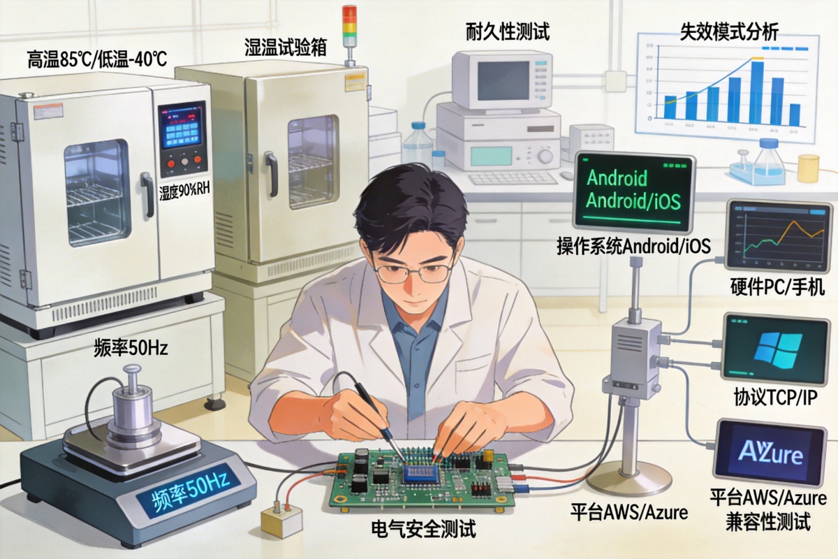 可靠性是产品生命力的基石。我们依据行业标准与客户特定需求,设计并执行包括环境适应性测试(如高低温、湿热、振动)、耐久性测试、电气安全测试及失效模式分析在内的全套可靠性验证方案。同时,针对日益复杂的生态系统,我们提供全面的兼容性测试,涵盖与主流操作系统、第三方硬件、通信协议及行业标准平台的互联互通测试,确保产品在实际应用场景中的稳定运行与无缝对接。