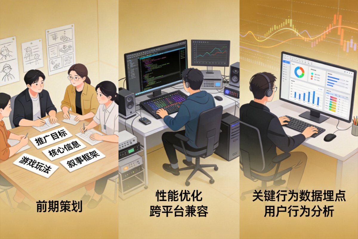 我们提供从前期策划、技术开发到后期数据追踪的全流程服务。在策划阶段,我们与品牌方协同,明确推广目标与核心信息,设计与之匹配的游戏玩法和叙事框架。在开发阶段,我们专注于性能优化与跨平台兼容性,保障流畅稳定的用户体验。项目上线后,我们提供关键行为数据埋点与分析支持,帮助品牌量化营销效果,洞察用户行为,为后续策略优化提供数据依据。