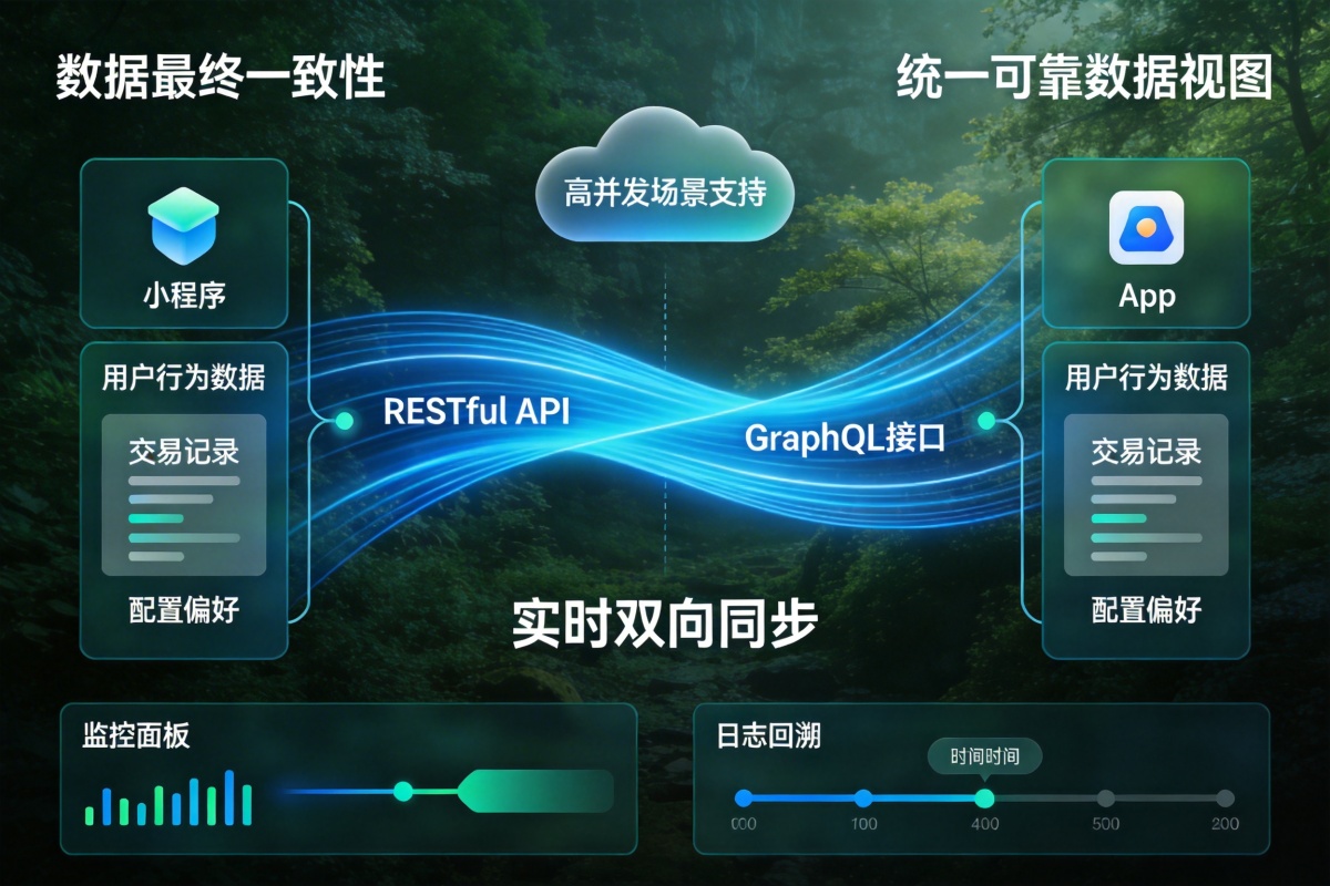 我们设计并实施稳健的数据同步与共享架构。基于RESTful API或GraphQL接口,确保用户行为数据、交易记录、配置偏好等关键信息在授权范围内,于小程序与App之间实时、安全地双向同步。该架构支持高并发场景,保障数据最终一致性,并具备完善的监控与日志回溯能力,为您的业务决策与用户运营提供统一、可靠的数据视图。