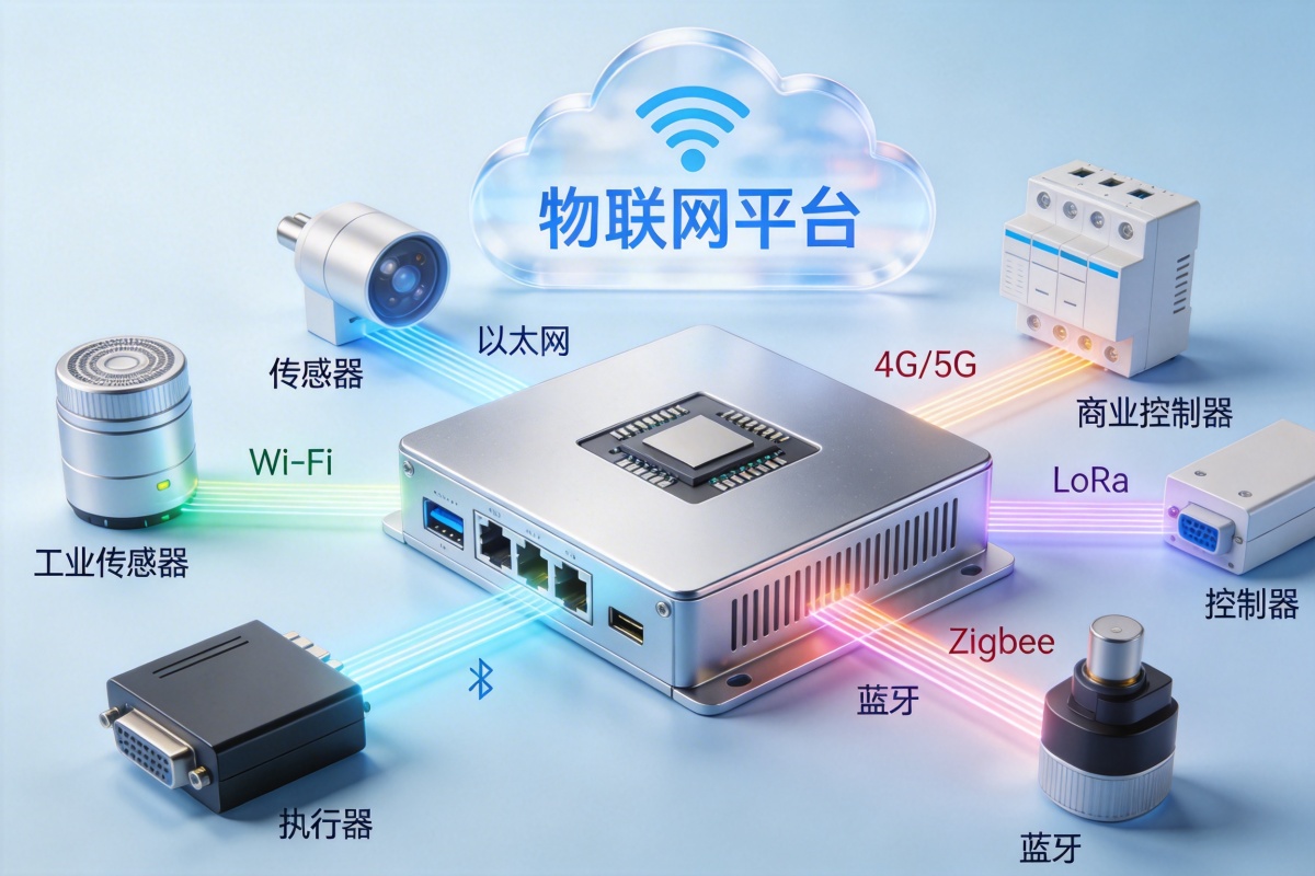 面对工业、商业及消费级场景中多样的传感器、控制器与执行器,我们的网关设备支持广泛的通信接口与协议。通过模块化设计,可实现以太网、Wi-Fi、4G/5G、LoRa、Zigbee、蓝牙等多种连接方式的灵活组合,确保不同类型、不同品牌的终端设备能够无缝接入统一的物联网平台。