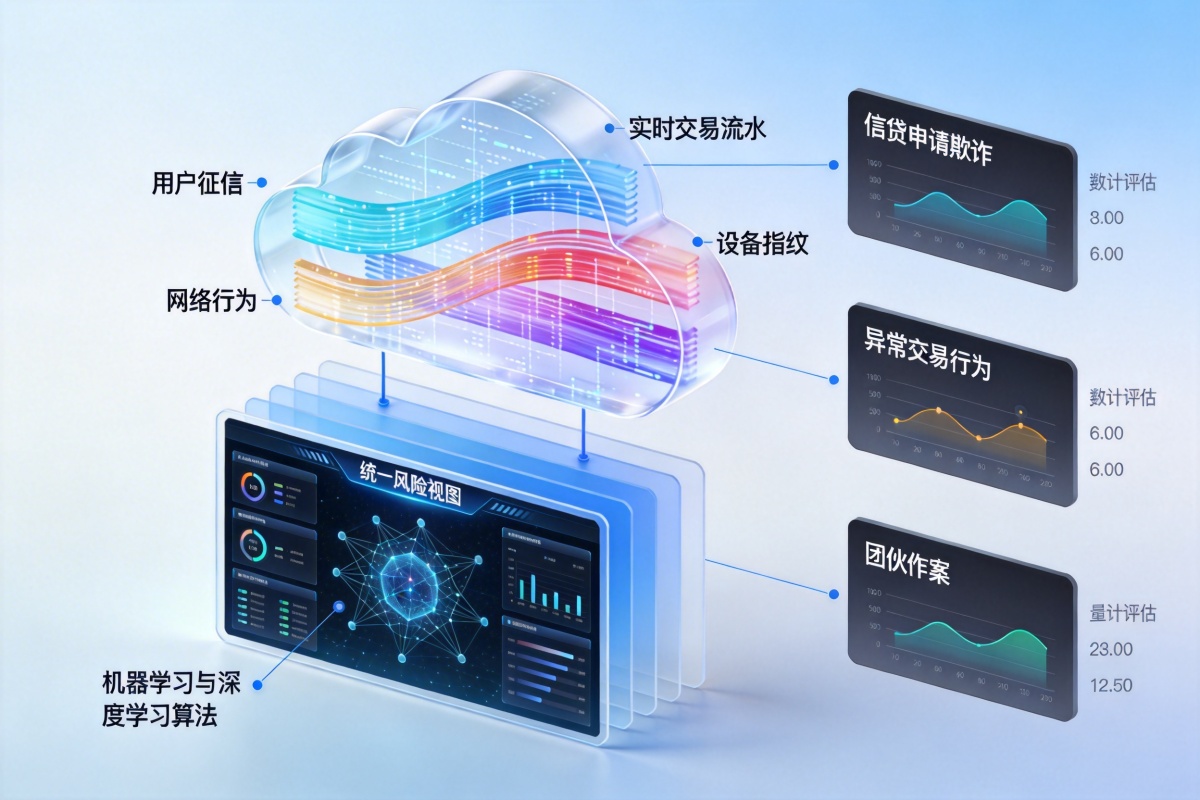 系统整合了用户征信、实时交易流水、设备指纹、网络行为等多维度异构数据源,构建了统一的风险视图。通过集成机器学习与深度学习算法,系统能够深入挖掘数据间的复杂关联与潜在模式,实现对信贷申请欺诈、异常交易行为、团伙作案等风险的精准识别与量化评估,显著提升风险判别的覆盖度与准确性。