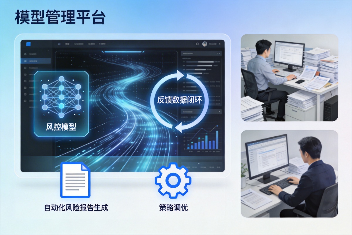 系统内置的模型管理平台支持风控模型的快速迭代与持续优化。通过反馈数据闭环,AI模型能够自适应新的风险模式,保持评估能力的时效性。自动化风险报告生成与策略调优功能,将分析师从繁琐的日常工作中解放出来,使其能够聚焦于高阶策略制定与复杂案例分析,从而在降低人工审核成本的同时,提升整体风控团队的专业效能。